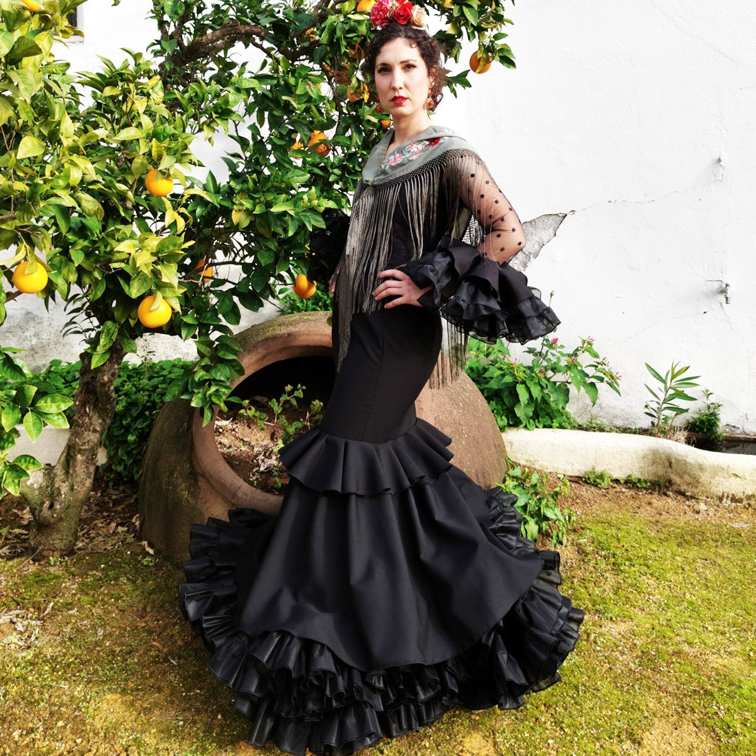 Un traje de flamenca en negro azabache que no sólo se viste, se siente.
